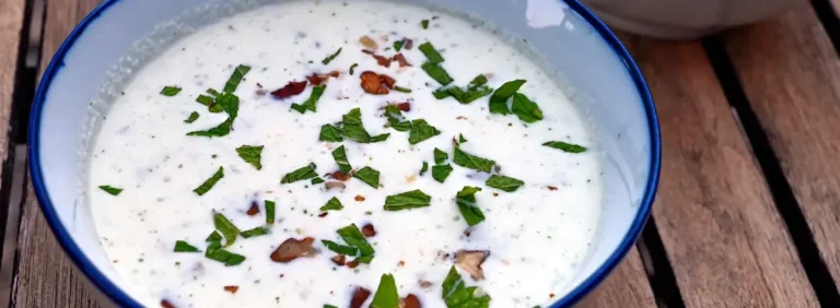 Gurke, Joghurt, Eiswasser, Knoblauch, Olivenöl und etwas Salz zermixen. Mit gehackten Walnüssen und Dill oder Minze bestreuen.
