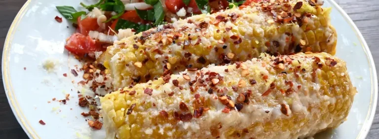 Vorgekochte (vakuumierte) Maiskolben kräftig braten. Mit Aioli (Knoblauchmayo) bestreichen, darauf Parmesan, Chiliflocken und Limettensaft geben.