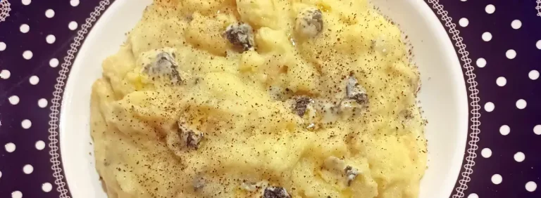 Instantpüree machen, mit Eidotter und Reibekäse vermischen, in eine Auflaufform geben. Löcher hineindrücken und Eier hineinschlagen, mit mehr Käse bestreuen und 20 Min. im Ofen backen.