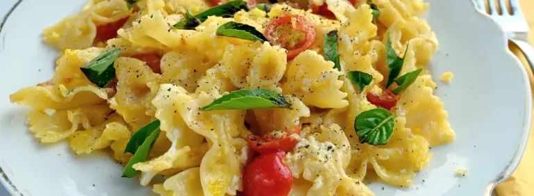 Dicke Eiernudeln kochen. Scamorza (Räucherkäse) grob hacken oder raspeln. Nudeln mit Ricotta, Kochwasser und reichlich Pfeffer mischen, mit dem Käse bestreuen.